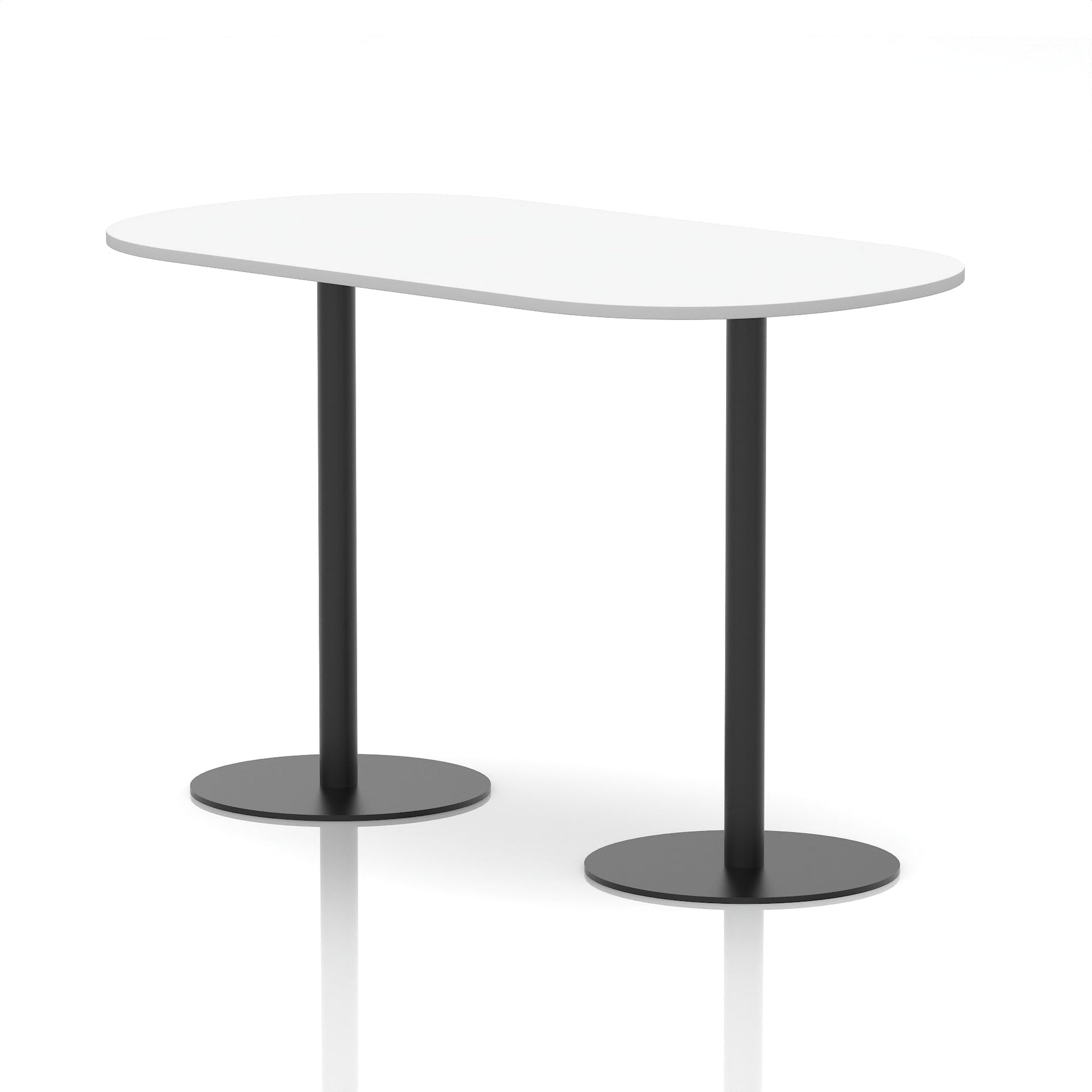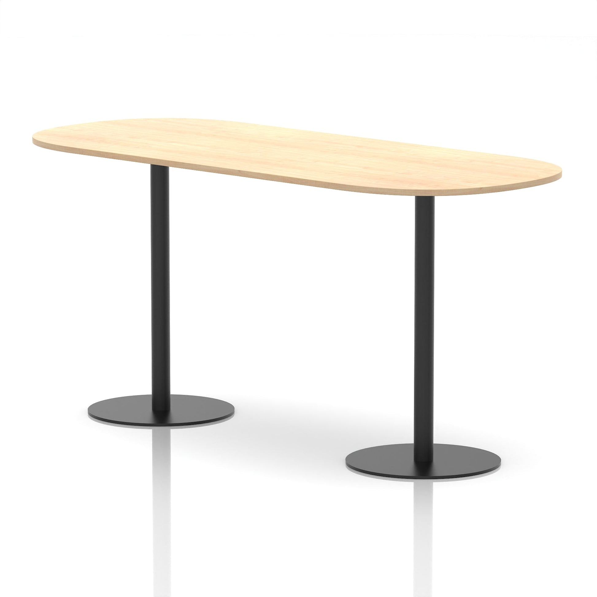 25mm thick desk top profile | Dual, brushed stainless steel effect circular base (580mm diameter) | Brushed stainless steel pillars (76mm diameter) | Weighted base provides stability | Two part bolted frame system