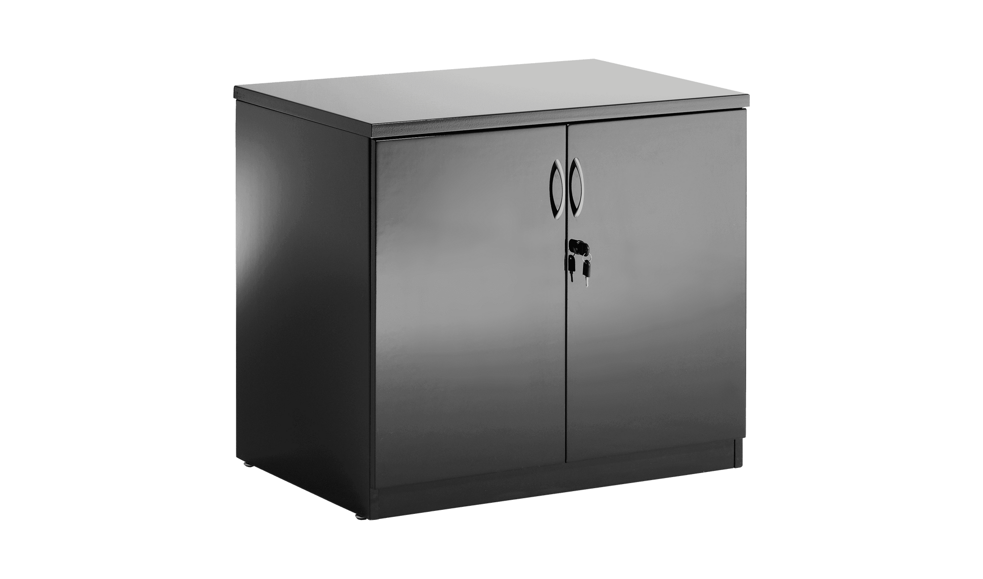 Elegant high gloss polished units | Silver handles | Chrome legs | Protective edging | High sheen black finish | Lockable