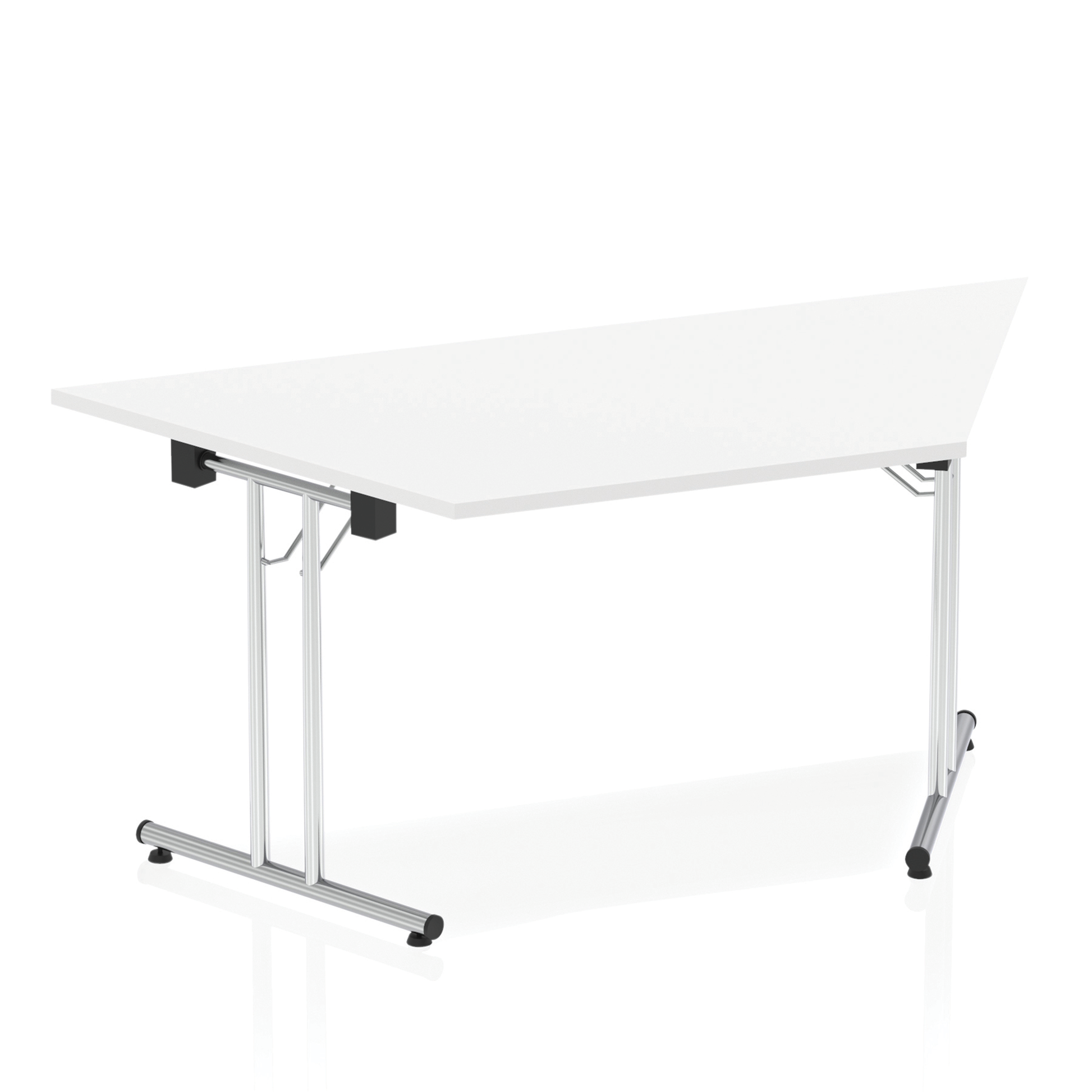 • Impulse freestanding meeting table • Trapezoidal shape for groups of tables • Table folds easily for space efficient storage • Provides excellent team working environment • Slanted sides measure 800mm from corner to corner • 25mm thick top • Attractive silver coated leg • 2mm abs protective edging • Heat resistant melamine finish • Steel to steel fittings • Weight Capacity: 100Kg • Acute angles are 60° • Obtuse angles are 120°