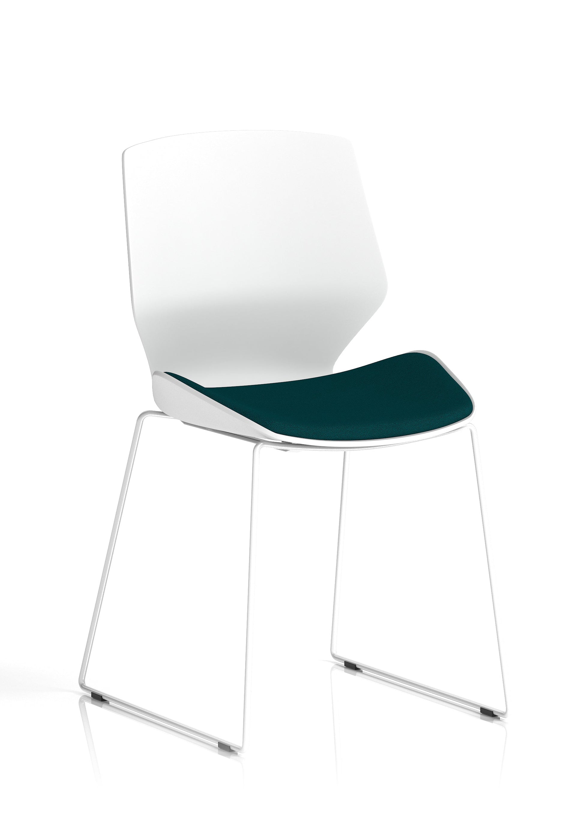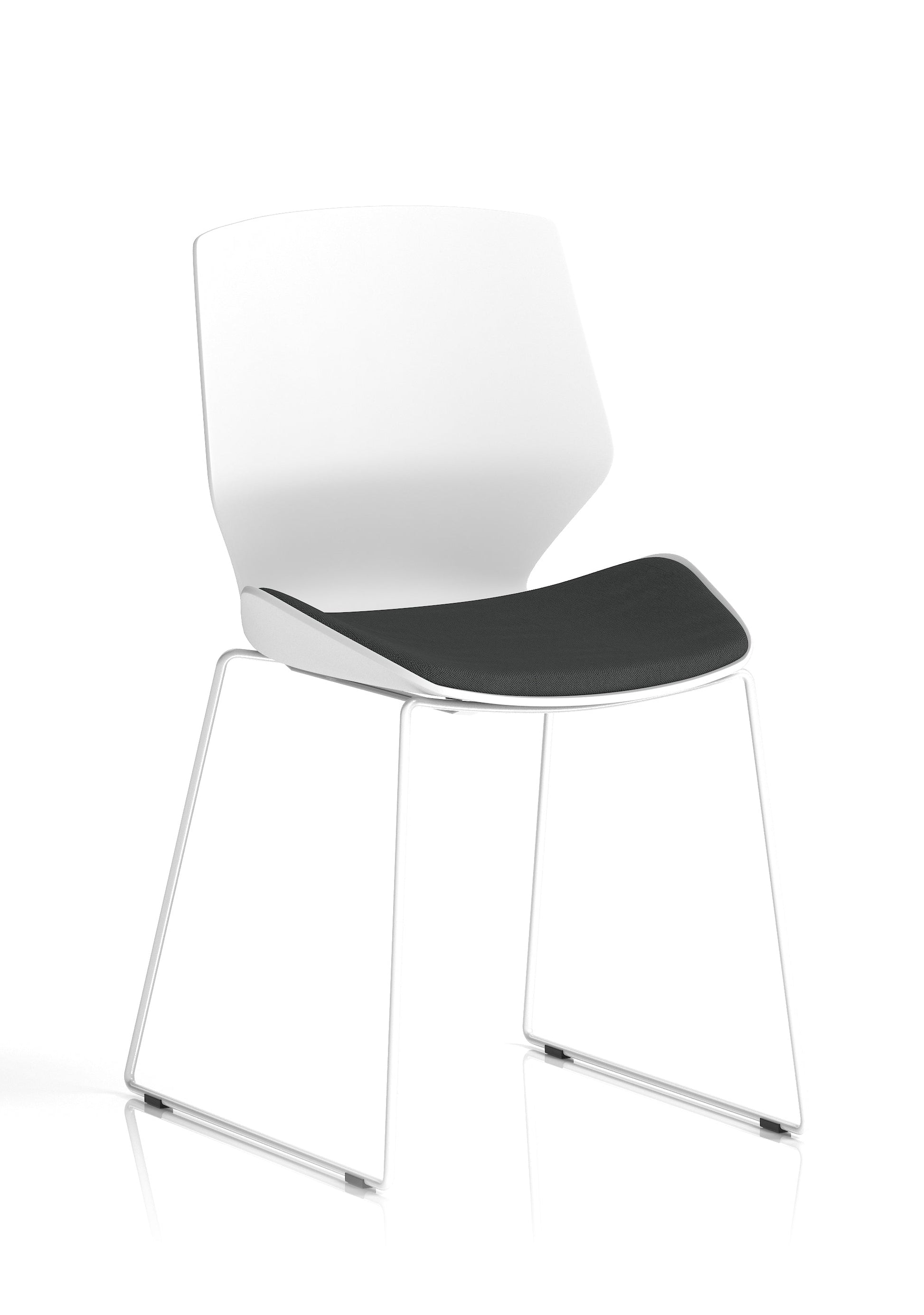 Florence Sled White Frame Fabric Seat Visitor Chair