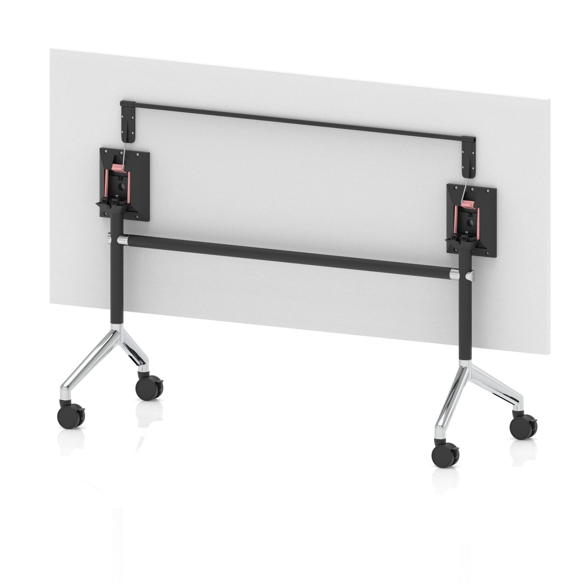 Impulse freestanding meeting table | Classic rectangular shape |Table folds easily for space efficient storage | Provides excellent team working environment | 25mm thick top | Attractive silver coated leg | 2mm abs protective edging | Heat resistant beech melamine finish | Steel to steel fittings | Weight Capacity 100Kg