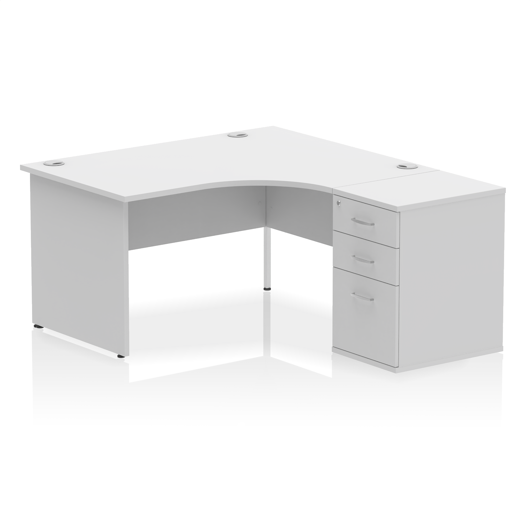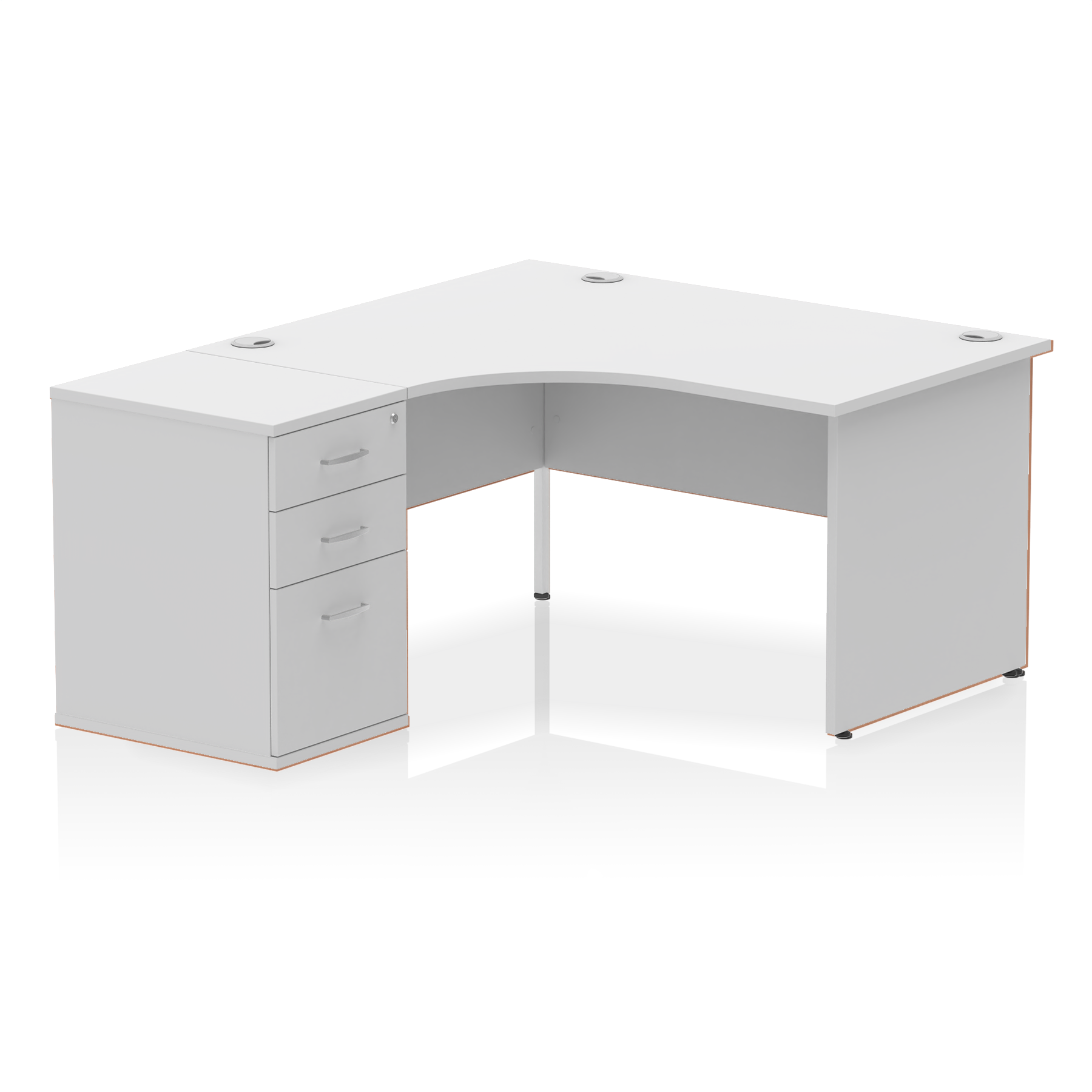 Impulse contract workstation | 25mm tops | Desk and pedestal combined | Heat resistant beech melamine finish | 18mm modesty panel | 2mm protective abs edging | Matching panel ends | Multiple cable ports | Height adjustable feet | Steel to steel fixings | Modesty panel slots wire slots| Deep set modesty panel (5") allows for compatibility of most screen clamp fittings